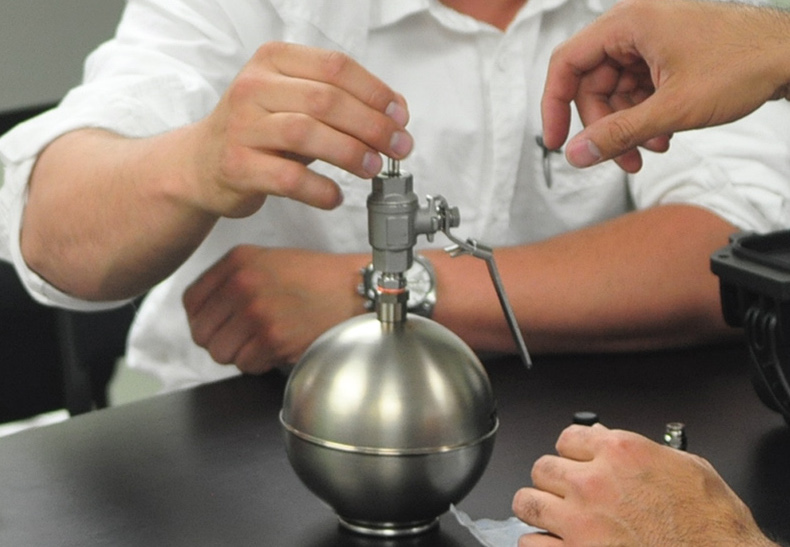 La combinación de tabique y accesorios está hecha de PTFE puro y ofrece alta resistencia a la corrosión. Los accesorios ligeros proporcionan una excelente elección para bolsas de muestras de PTFE.